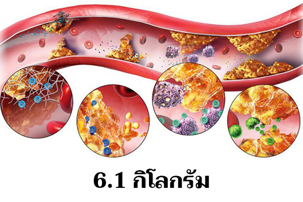 เมื่ออายุ 50 ปี คราบคอเลสเตอรอลมากถึง 5 กิโลกรัมจะสะสมในหลอดเลือดของคนเรา คอเลสเตอรอลที่สะสมจะทำให้รูของหลอดเลือดแคบลง 4-5 เท่า